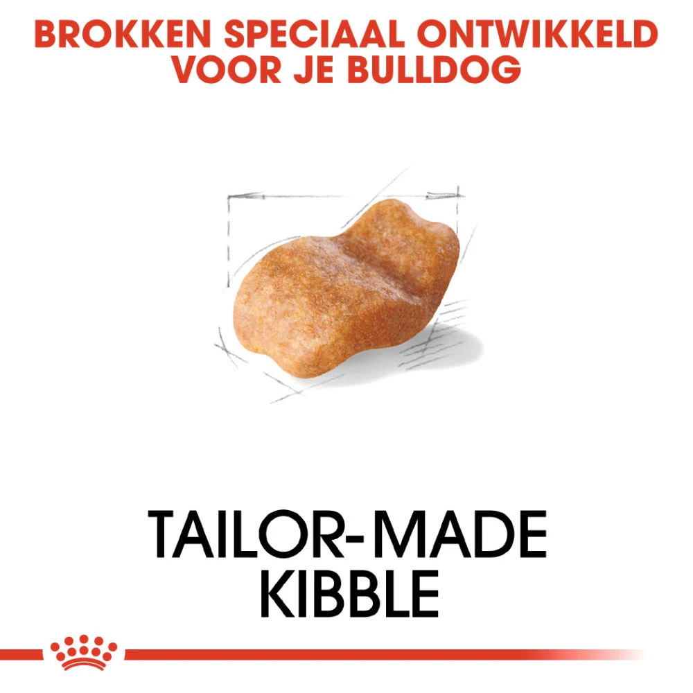 Bent u op zoek naar geschikt voer voor uw Bulldog? Royal Canin Bulldog Adult is speciaal samengesteld hondenvoer dat bijdraagt aan sterke botten, soepele gewrichten en een gezonde huid. Daarnaast ondersteunt dit voer de spijsvertering en darmflora om zo de kwaliteit van de ontlasting te verbeteren en nare geurtjes te verminderen. De unieke vorm van de brokken zorgt ervoor dat uw hond gemakkelijk de brokjes op kan pakken en erop kan kauwen.