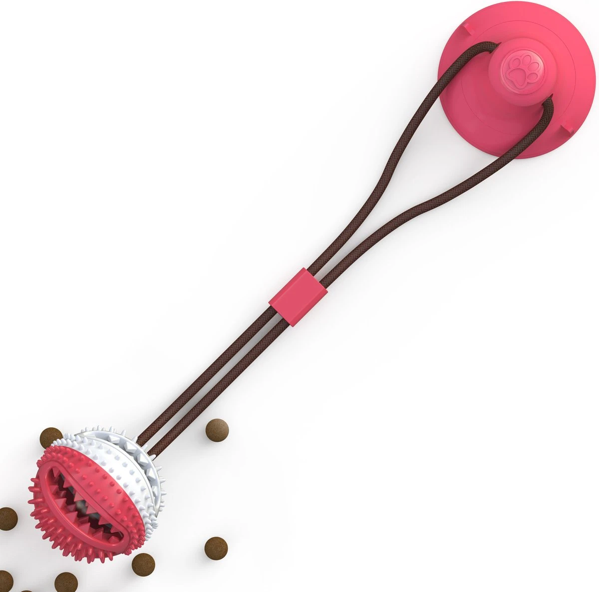 Trimmi Speelgoedbal – Honden Speelgoed Bal – Zuignap Met Touw – Honden Speelgoed Intelligentie – Honden Bal – Honden Tandenborstel – Roze/wit